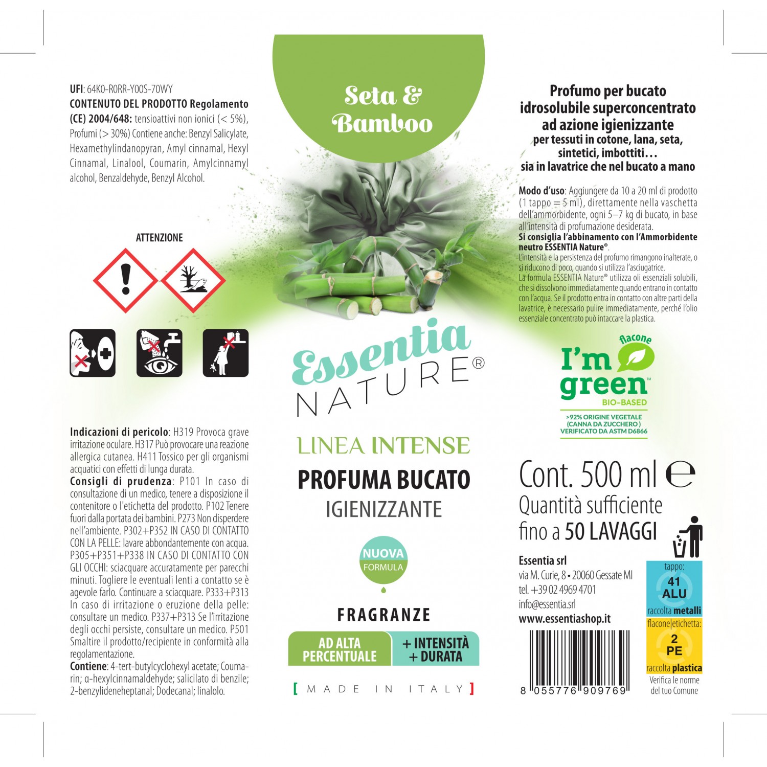 Essentia - Profumo per Bucato Linea Intense Seta e Bamboo 500 ml