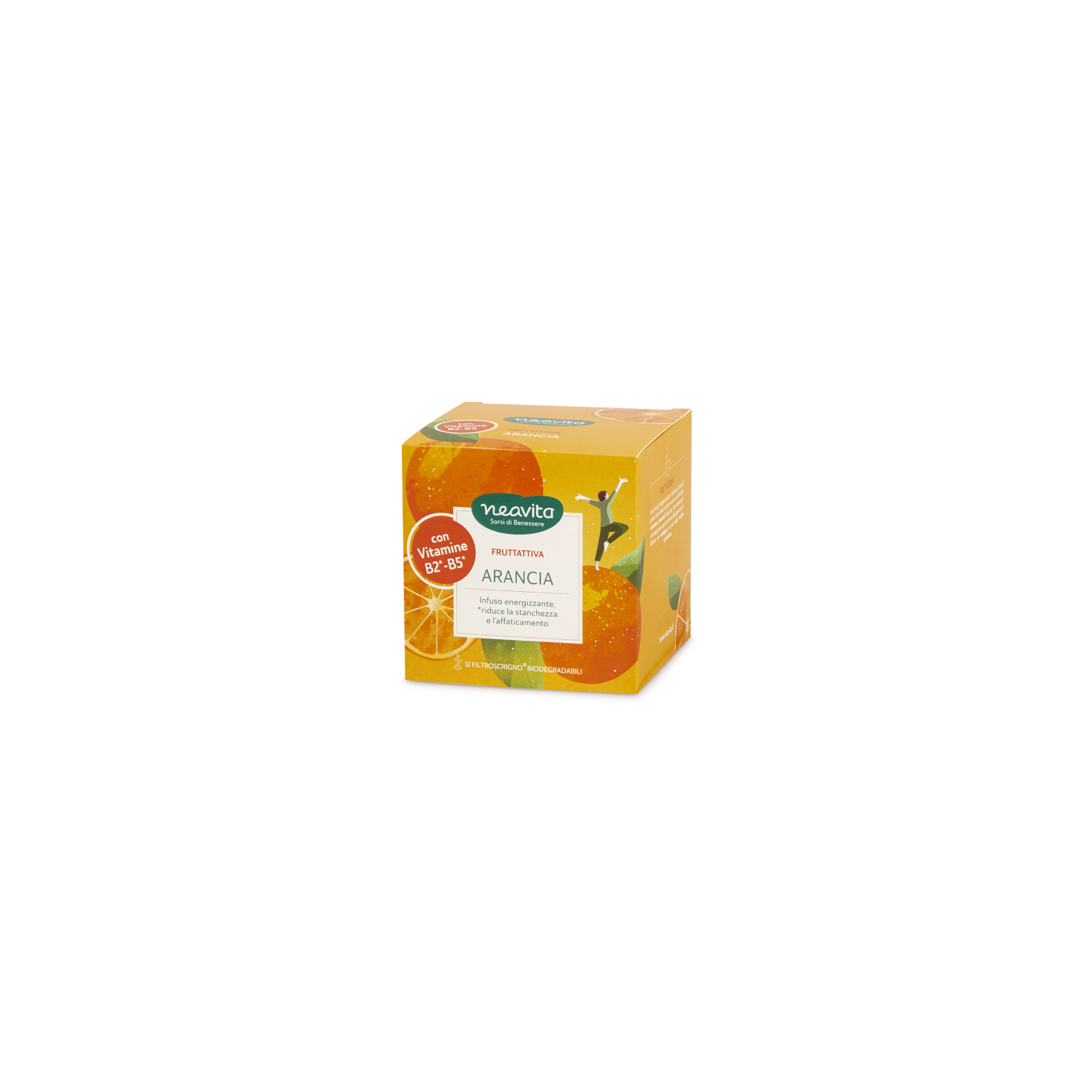 Neavita Fruttattiva Arancia con Vitamine del Gruppo B è un infuso alla frutta formulato per offrire una bevanda piacevole e funzionale, pensata per accompagnare i momenti della giornata in cui è richiesto maggiore supporto energetico e metabolico