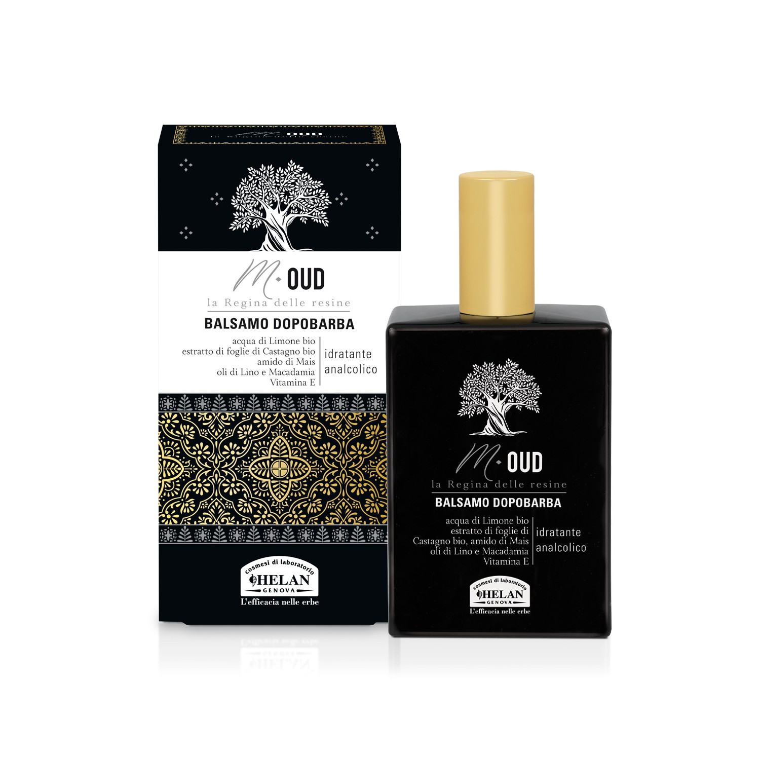Helan - M-OUD Balsamo Dopobarba 75 ml Fluido balsamo idratante analcolico che scorre leggero sulla pelle e attenua le irritazioni del rasoio grazie all’attività calmante e disarossante dell’estratto di foglie di Castagno bio, efficace anche nel lenire la sensazione di prurito mentre l’amido di Mais, prezioso agente texturizzante, contrasta l’effetto lucido assorbendo eventuali tracce di untuosità.